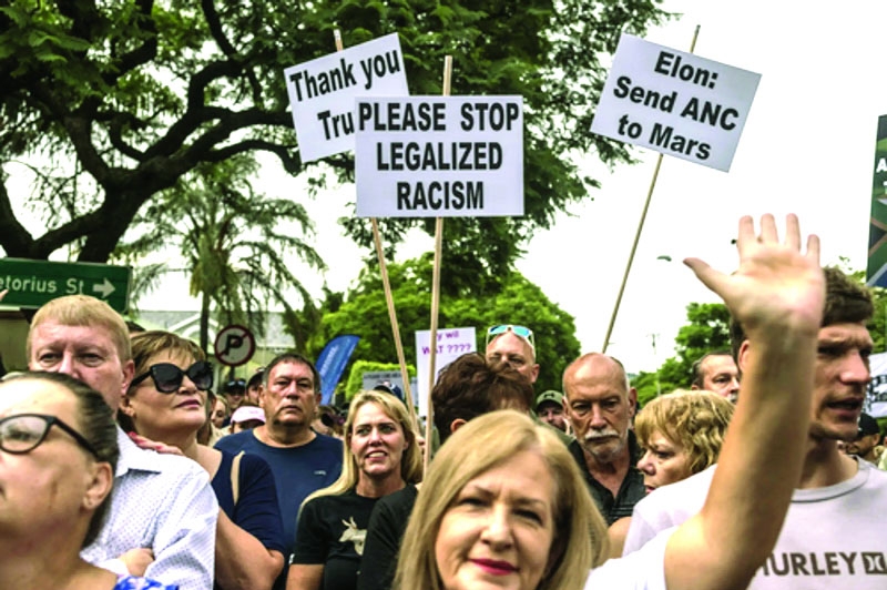 White South Africans supporting US President Donald Trump and South African and US tech billionaire Elon Musk gather in