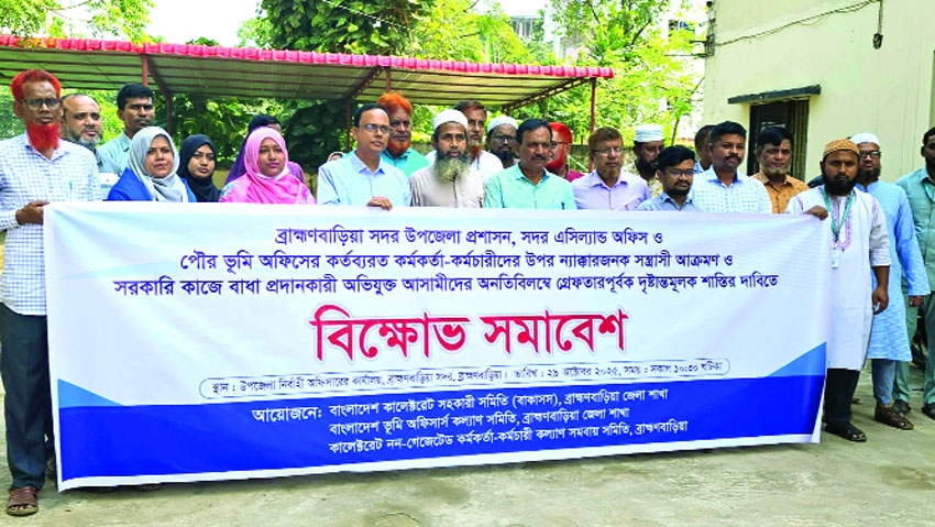 A protest rally was held in Brahmanabaria on Wednesday condemning the attacks on government officials and employees.'Brahmanbaria Non-Gazetted