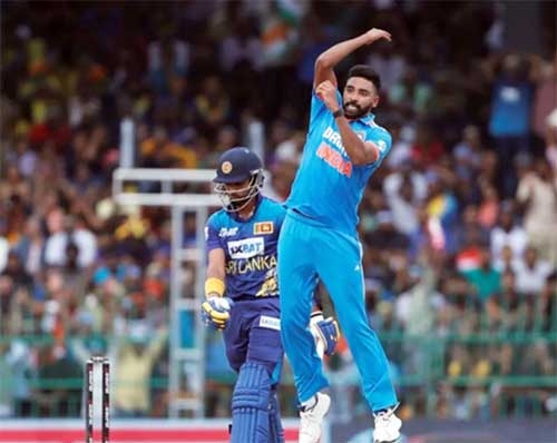 ওভারের প্রথম বলে পাথুম নিশাঙ্কাকে (৪ বলে ২) রবীন্দ্র জাদেজার ক্যাচ বানান সিরাজ। তৃতীয় বলে তিনি এলবিডব্লিউ করেন সাদিরা সামারাবিক্রমাকে (০)। পরের বলে চারিথ আসালাঙ্কাকে (০) কভারে ক্যাচ দিতে বাধ্য করেন।