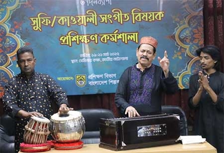 বাংলাদেশ শিল্পকলা একাডেমির আয়োজনে এবং প্রশিক্ষণ বিভাগের ব্যবস্থাপনায় শুরু হয়েছে ৩ দিনব্যাপী সুফি/কাওয়ালী সংগীত বিষয়ক প্রশিক্ষণ কর্মশালা। 19 মার্চ ২০২৫, বুধবার, বেলা ৩টায় জাতীয় নাট্যশালার সেমিনার কক্ষে এই কর্মশালা শুরু হয়। ২১ মার্চ ২০২৫ তারিখ পর্যন্ত প্রতিদিন বেলা ২টা থেকে বিকাল ৫টা পর্যন্ত এই কর্মশালা চলবে।