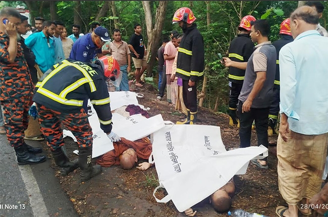 প্রত্যক্ষদর্শীরা জানান, সকালে টানা বৃষ্টিপাতে মহাসড়ক পিচ্ছিল হয়ে পড়লে চট্টগ্রামমুখী মাইক্রোবাসটি নিয়ন্ত্রণ হারিয়ে সড়কের পাশের গাছে ধাক্কা খেয়ে খাদে পড়ে যায়। এতে ঘটনাস্থলেই চালকসহ তিনজন নিহত হন। আহতদের উদ্ধার করে স্থানীয় হাসপাতালে পাঠানো হয়েছে।