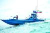 An Iranian military boat patrols as a warship enters Iranian waters before a joint