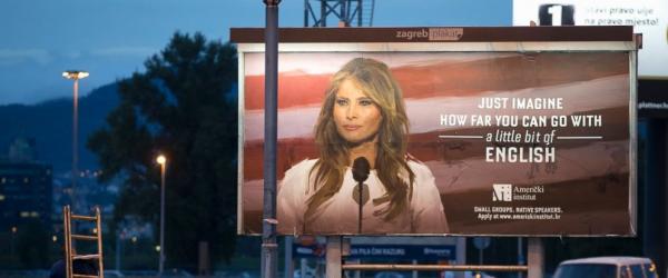 Billboards featuring Melania Trump and the slogan "just imagine how far you can go with