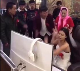 [WATCH] Computer game addict bride is dragged to her own wedding