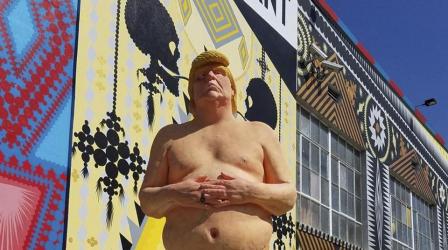 A naked statue of Donald Trump, complete with a distended belly and jowly sneer, is