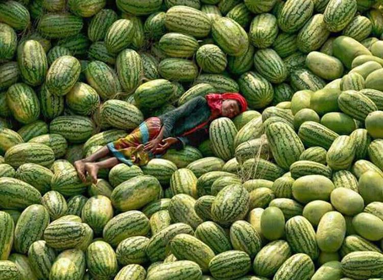 A photo featuring a young boy sleeping on a pile of water melon was posted on the Fb page ALAPCHARI. It is the most popular fruit in the summer season. So people are reacting much to the post. "Wow.. Nice watermelon." Rabby Joy, Fb