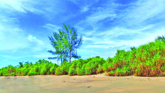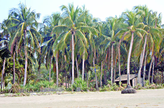 Coconut treesMost of the inhabitants of the island live primarily on fishing. The other staple crops are rice and coconut. Being very common on the island, algae are collected, dried, and exported to Myanmar. As the centre and the south are mainly farmland and makeshift huts, most of the permanent structures are around the far north. St. Martin's Island has become a popular tourist spot. The surrounding coral reef has an extension named Chera Dwip. A small bush is there, which is the only green part, enhancing the beauty of this island. People do not live on this part, so it is advisable for the tourists to go there early and come back by afternoon.