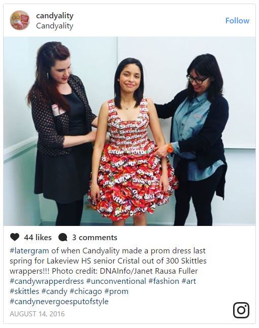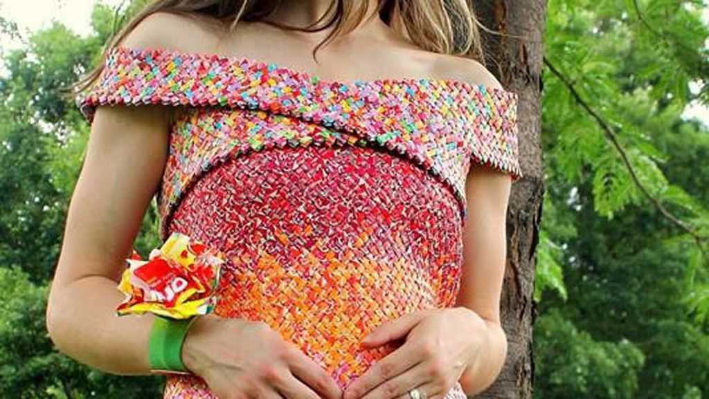 In another great example of food and fashion colliding in a spectacular way, artist Emily Seilhamer (@EmilySeilhamerArt), up-cycle specialist from Pennsylvania in the US, has been making viral news for creating an entire dress out of Starburst candy wrappers.