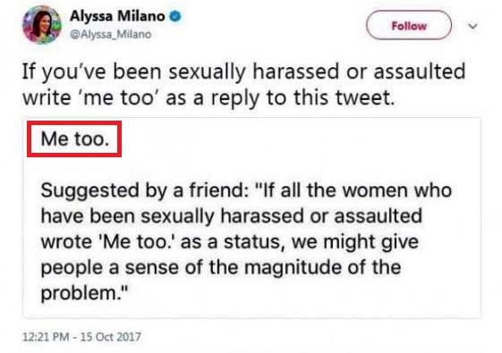 Alyssa Milano, whose Charmed co-star Rose McGowan has essentially become the Joan of Arc of the Weinstein scandal, shared a message on her social media channels which says “If all the women who have been sexually harassed or assaulted wrote ‘Me Too.’ as a status, we might give people a sense of the magnitude of the problem.”